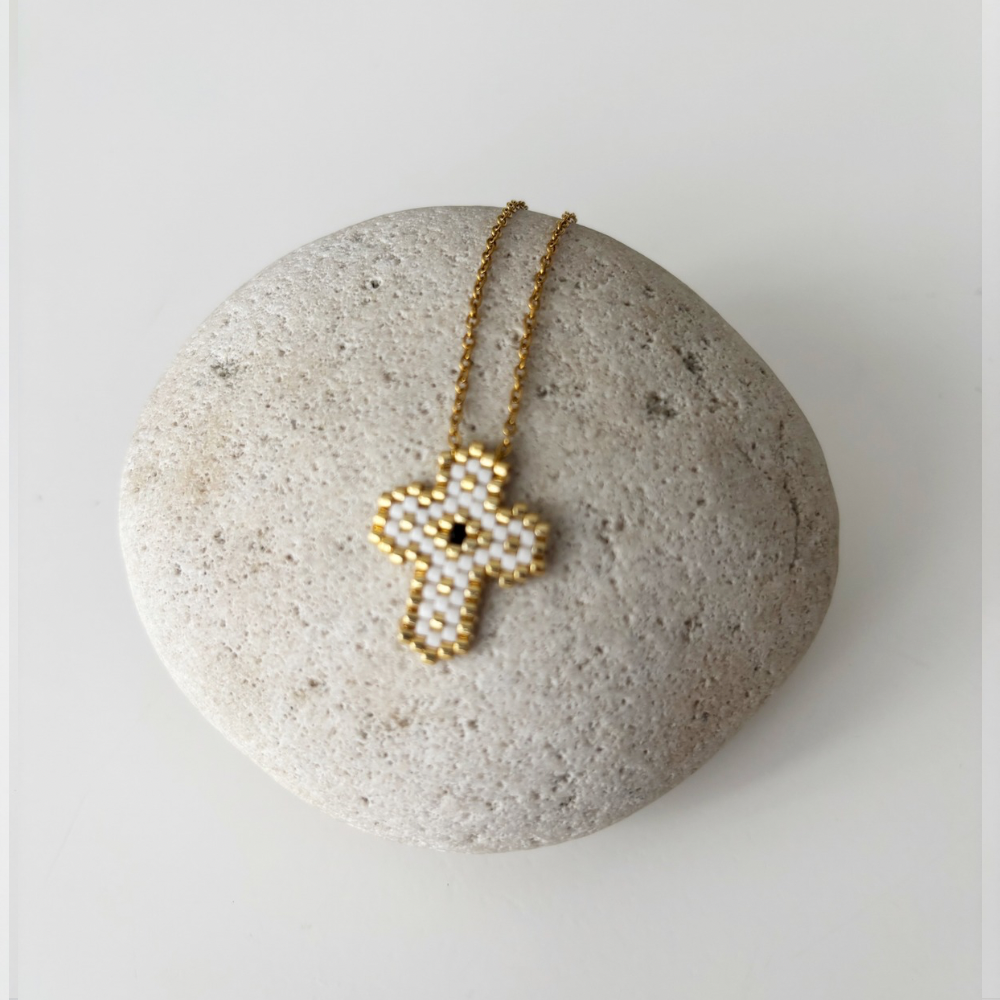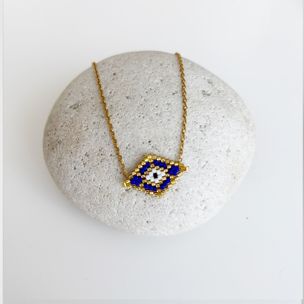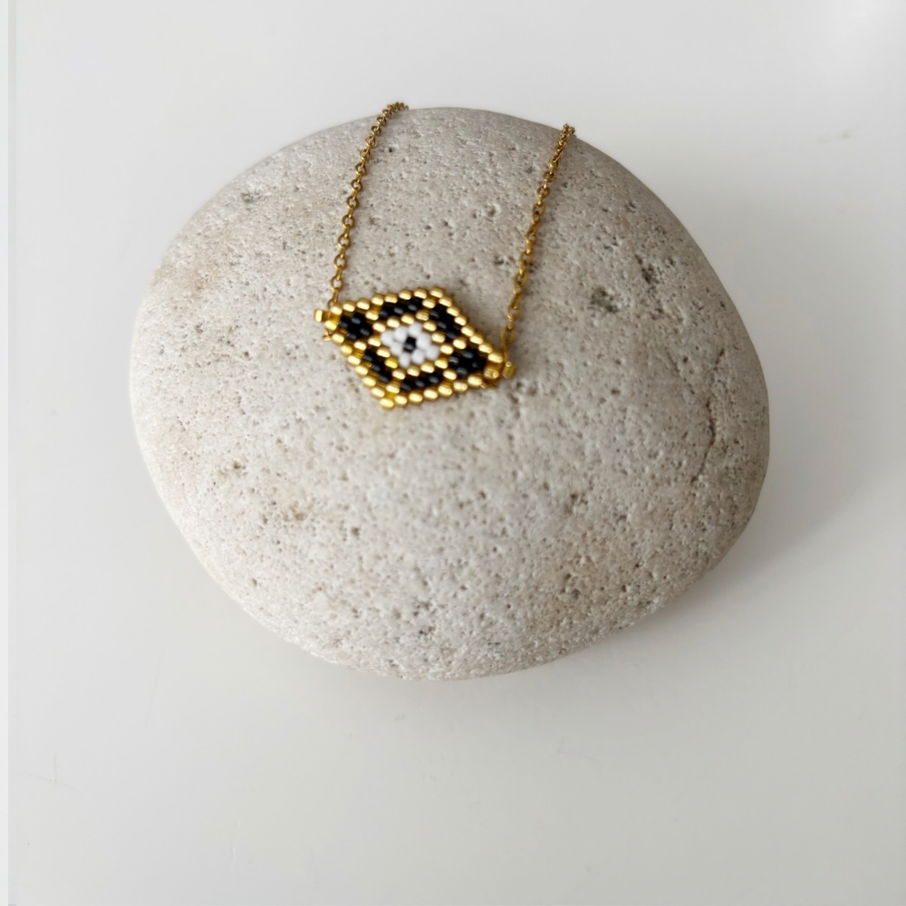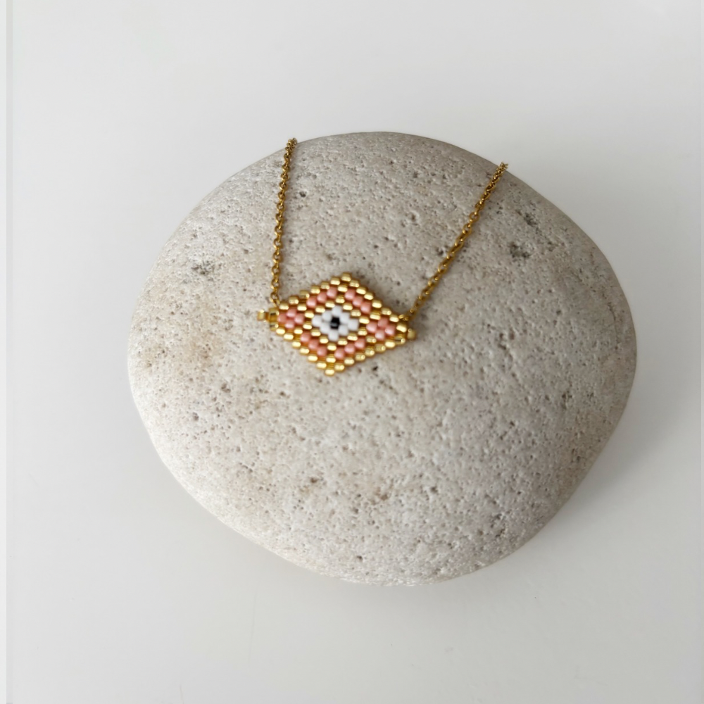 beaded macrame necklaces, crafted from durable stainless steel and it resists tarnishing. Made in Greece